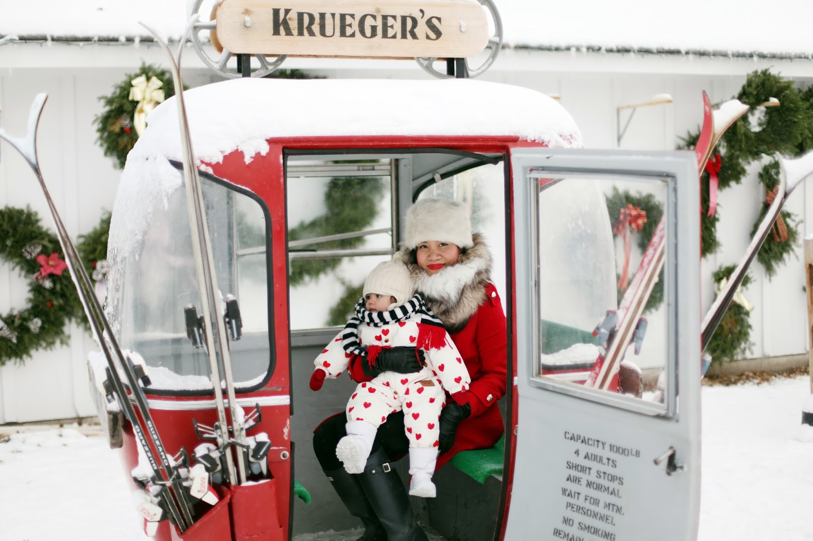 My husband made a great suggestion - that we should cut our own Christmas tree this year. It was the best idea ever - what better way to celebrate our daughter's first Christmas than to start our own family tradition. I'd been manning the weather reports for weeks because what would even more perfect than cutting your own tree - doing it in the snow of course! And snow it did last week. Unfortunately, it was cold. Real cold. 0 degrees cold. The weather looked brutal the whole of December, so this weekend was our only chance to brave the snow and cold. Krueger's Christmas tree farm luckily was only 30 minutes away. It couldn't have been more charming - cozy cottage sheds, ski lifts and sleighs and even Santa Claus warming himself in front of the fire. My hubz and little girl seemed pretty nice and toasty but I made the mistake of wearing wellies without any lining, so by the time we got our tree, after five minutes, I was so over it. Hubz was having a jolly old time in his parka and badass Sorel snowboots, and wanted to go further into the forest, but as I couldn't feel my toes, and was worrying that my little polar bear might be getting frostbitten, I barked "we're done!" and hightailed it back the warming house. And that, was our first year tradition. Let's hope we have a heat wave next year.